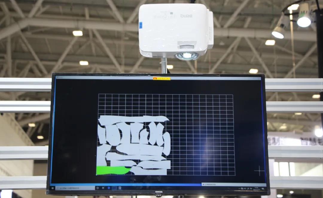 裁剪后,拾料系统将裁片信息投影到对应的裁片上。